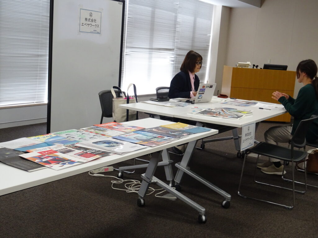 ワーカーは名刺交換から始まり、自己紹介書やパソコン画面などで実績を紹介する姿が見られ、それぞれが工夫を凝らして自分をアピールしていました。